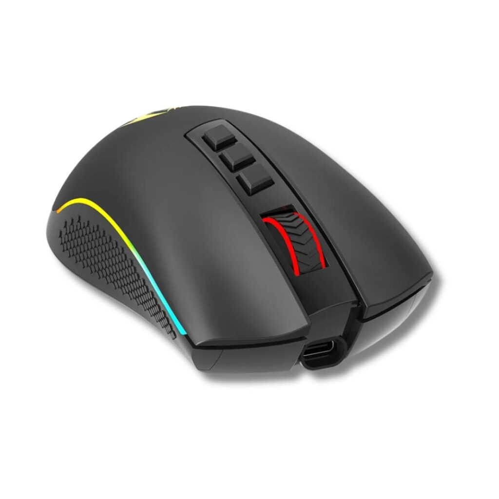 O Mouse Gamer Redragon Cobra Pro RGB M711-PRO é um mouse sem fio de alto desempenho, equipado com sensor Pixart PAW3335 que permite até 16.000 DPI ajustáveis, garantindo alta precisão e velocidade para jogos competitivos. Possui 8 botões programáveis para máximo controle e personalização, além de iluminação RGB Chroma Mk.II com diversos modos configuráveis. Seu design ergonômico ultraleve, com cabo removível USB-C Superflex paracord, proporciona conforto prolongado e liberdade de movimento. A bateria oferece até 6 dias de uso contínuo, e o software dedicado permite ajustes de DPI, macros e iluminação, tornando-o ideal para gamers que buscam eficiência, estilo e versatilidade